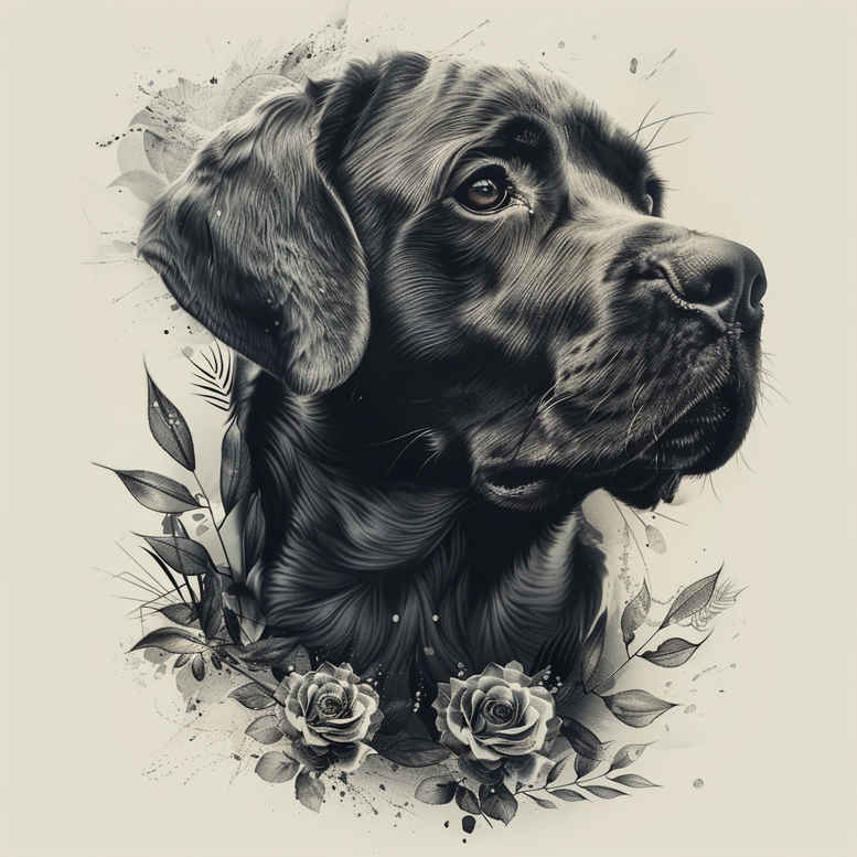AI-generated tattoo project concept presented in a professional magazine tone, this piece pairs a lifelike dog portrait with a delicate floral frame in black and grey. The central subject is a soulful hound rendered in smooth grayscale shading, emphasizing depth and nuanced tonal variation in the fur and gaze. Surrounding the head, a cluster of roses and subtler leaves forms a circular wreath that balances realism with natural symmetry, creating a timeless tattoo ready for many placements. The technique relies on layered shading, soft gradients, and feathered transitions rather than harsh outlines, delivering a quiet yet powerful image that remains legible at both small and large scales. The composition conveys loyalty and memory through a meaningful tattoo design: the dog as a devoted companion, the roses as tribute and beauty, and the leaves as a symbol of growth and renewal. This concept invites customization in size, pose, spacing, and background to fit individual anatomy while preserving the emotional core. Because of its dense grayscale contrast, the artwork is especially suitable as a cover-up option for existing tattoos in the same locale, using negative space and meticulous tonal balance to mask underlying ink while preserving the integrity of the new image. The piece nods to black and grey realism traditions and can be adapted toward subtle Japanese-inspired line work or a more classic traditional approach, all while maintaining its intimate message. For discoverability, it aligns with tattoo, tattoo design, meaningful tattoos, fine line tattoo, rose tattoo design, small tattoos, flower tattoos, custom tattoo design, Japanese style tattoo, black and grey, realistic tattoo, body art, and ink, offering a versatile blueprint for a personalized tattoo project.