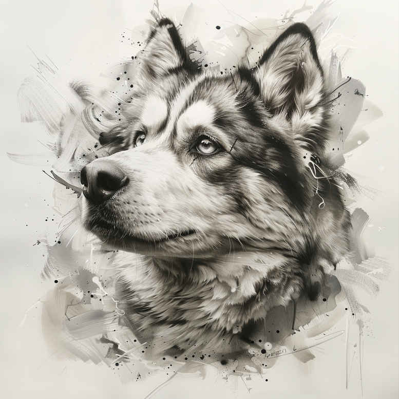 This AI-generated tattoo project presents a dog head portrait rendered in black and grey with a contemporary watercolor wash. The composition centers on a lifelike canine gaze, ears alert, with soft shading that builds volume through gradual transitions from dense charcoal to light graphite tones. Surrounding the head, irregular watercolor splashes create an atmospheric backdrop, blending the subject with negative space for an integrated, painterly feel. The lines are restrained, allowing the grayscale shading and texture to carry the realism, while the splatter accents introduce movement and an organic pattern that echoes ink on skin. Although the subject is a canine portrait, the design aligns with timeless tattoo design vocabularies—strong yet delicate, suitable for a range of body placements from forearms to calves. From a technique perspective, the concept leans on black and grey realism with subtle fine line edges, nuanced tonal gradation, and a controlled wash that simulates a watercolor tattoo aesthetic without sacrificing clarity for tattoo longevity. The piece plays with light and shadow to emphasize the dog’s expressive eyes, snout, and fur texture, while the splash elements function as a pattern that can be adjusted to conceal or reveal underlying skin tones. In branding terms, this is a meaningful tattoo concept that could pair beautifully with additional motifs such as a lotus flower tattoo or a small infinity tattoo to symbolize loyalty and eternity, or with a rose tattoo design as a companion element in a larger sleeve. It is also adaptable to Japanese style tattoo sensibilities through selective line work and composition, while preserving a bold black and grey palette that appeals to fans of realistic tattoos and fine line detailing. As a stand-alone piece, it remains a striking body art statement, yet the layered grayscale and splashes make it a versatile option for cover-up sessions, where existing tattoos require thoughtful concealment. Note that this is an AI-generated tattoo project concept intended to spark creative collaboration between client and artist, and it embraces the evolving possibilities of ink, design, and technology in modern tattoo practice.