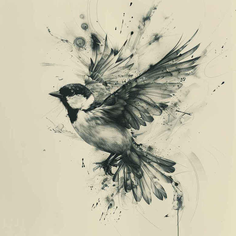 This black and grey watercolor bird in flight serves as a refined AI-generated tattoo project and a flexible concept for a custom tattoo design. The bird’s silhouette is defined by fine line work, while deliberate watercolor washes evoke the softness of feathers and the air beneath wings. The composition relies on negative space and varying ink density to create depth, with bold outlines tempered by translucent gray tones that translate well to skin. The image captures motion and freedom, making it a meaningful tattoo design for wearers who value symbolism around resilience and new beginnings. The piece is suitable for a range of placements – forearm, shoulder, or calf – and scales well from small tattoos to a larger, more elaborate body art piece. The black and grey palette ensures timeless appeal and compatibility with other tattoos, including floral motifs such as lotus flower tattoo designs or rose tattoo design concepts, while keeping the look understated and elegant. Technique notes point to precise line work for the bird’s core shape and feather details, augmented by watercolor splashes that simulate breath and atmosphere rather than hard edges. As a versatile concept, this design can be adapted into Japanese style tattoo or a more realistic tattoo depending on the artist’s approach, toward a refined piece that remains classic over time. In short, this AI-generated tattoo project offers a stylish, meaningful option for those seeking a delicate bird motif in black and grey ink.
