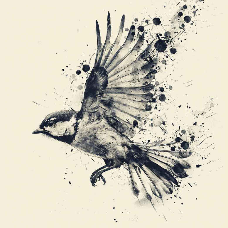 AI-generated tattoo project concept featuring a hummingbird in flight rendered in black and grey ink with watercolor-inspired splatter. The composition centers on a sleek hummingbird, its outstretched wings defined by fine, continuous lines that convey motion, paired with soft, diffuse shading to delineate head, beak, eye, and feather textures. A dynamic backdrop of scattered ink splatters adds graphic rhythm and depth, while thin negative-space gaps preserve clarity when scaled. The piece reads as a small-to-medium tattoo design suitable for placement on the forearm, shoulder, or calf, and is particularly well-suited as a cover-up template should a client wish to mask previous marks with a lighter, elegant motif. Though the palette remains monochrome, careful attention to line weight and shading yields a realistic tattoo vibe that remains versatile for skin tones and aging; this highlights the benefits of a black and grey approach in a modern pattern-driven concept. The hummingbird motif can symbolize resilience, agility, and a zest for life, and the splatter backdrop introduces a contemporary edge that can be amplified with additional elements such as a lotus flower tattoo, infinity tattoo, or flower tattoos in future iterations. This concept aligns with meaningful tattoos and is compatible with a fine line, black and grey style; it can be adapted to Japanese style tattoo or a more realistic approach, and serves as a strong base for a custom tattoo design that respects size constraints of small tattoos while maintaining readability. As an AI-generated tattoo project, it offers a solid starting point for artists seeking a pattern-rich design whose ink density supports longevity and healing, while the contrast between crisp linework and irregular splatters demonstrates both control and spontaneity—perfect for body art narratives that can evolve into larger pieces or be used as a cover-up-friendly motif if clients request adjustments.