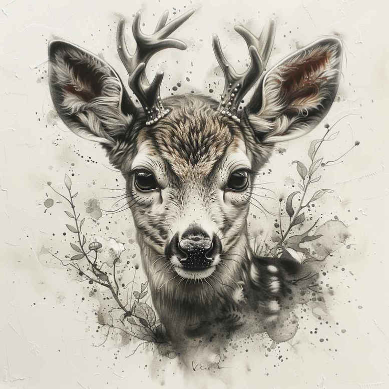 AI-generated tattoo project concept depicting a realistic deer head with imposing antlers, framed by delicate botanical branches. Executed in black and grey with fine line shading transitions, the composition emphasizes contour precision and subtle fur texture contrasts. The deer’s gaze is direct, conveying strength and introspection, while the surrounding twigs and sparse leaves add organic movement and a whisper of gentleness. The design leverages dense shading and bold silhouette, making it an excellent choice for a cover-up on darker skin tones or over existing ink, as the heavy blacks can be repurposed to blend with prior work. The palette remains restrained to preserve longevity and readability across ages and skin tones, with fine-line detailing for fur, crisp outlines for antlers, and soft grey washes to create depth and realism. The botanical accents act as a natural frame, guiding the eye from the antlers along the neck and chest area. In terms of tattoo design, the concept is scalable for shoulder, chest, or upper arm placements and adaptable to a Japanese style interpretation or a modern black and grey realism approach. Symbolically, the deer embodies regeneration, grace, and perseverance, while the intertwined branches symbolize growth, resilience, and cycles of nature. As an AI-generated tattoo project, it offers a compelling starting point for a custom tattoo design, capable of becoming a deeply meaningful ink for the wearer.