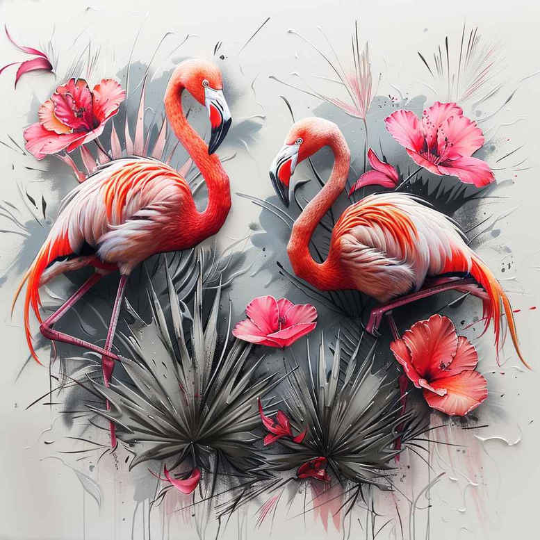 This image showcases a watercolor tattoo design concept featuring two pink flamingos framed by tropical blooms and wispy grasses. The composition emphasizes fluid washes of pinks, corals, and soft greens, with fine-line detailing along the beaks and feather edges to preserve legibility on skin. The flamingos are rendered with smooth gradient transitions, their curved necks forming an elegant counterpoint to the upright blades of grass and the rounded shapes of the blossoms. Flowers in bloom tones anchor the foreground, while delicate foliage recedes into a pale, airy background, giving a sense of depth and movement. The overall effect is a cheerful yet sophisticated color tattoo design that works well as a stand-alone piece or as a centerpiece in a larger sleeve. The concept favors a painterly approach rather than hard black outlines, which creates a soft, luminous look that translates well to both small tattoos and larger compositions. For meaning, flamingos symbolize balance and beauty, while the tropical blossoms evoke vitality and growth, making this a meaningful tattoo design for someone seeking a nature-inspired motif with an artistic edge. The imagery aligns with contemporary trends in fine line and watercolor tattoo styles, offering flexibility for personalization, scale adjustments, and integration with botanical or Japanese-style elements in a custom tattoo design. This AI-generated tattoo project underscores the potential of digital artistry to inform traditional body art, and the final piece can be adapted for different skin tones and placements while maintaining clarity and color harmony. Cover-up considerations depend on color choice and contrast in the final skin rendering, but the concept itself is not inherently a cover-up piece and remains suitable for a wide range of placements.