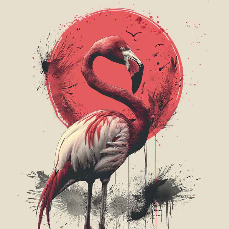 AI-generated tattoo project concept featuring a watercolor flamingo with a bold red circle backdrop and scattered black ink splatters. The composition blends soft washes with a crisp silhouette to create a dynamic focal point for a color-forward tattoo. The flamingo, rendered in pink hues, stands with an elegant S-curve, while the red circle acts as a sun or halo, grounding the piece with warm energy. The ink splatters add an expressive, spontaneous edge, characteristic of contemporary watercolor tattoo styles. In technique terms, expect airy gradients, subtle line work, and controlled bleeding that preserves a playful yet sophisticated look when scaled to the forearm, shoulder, or calf. Symbolically, the flamingo can signify balance, beauty, and resilience; the circle evokes cycles, wholeness, and focus; the ink splatters suggest chance and breath within structure. As an AI-generated tattoo project concept, it aims to fuse realism in the flamingo’s contour with abstraction in the background, yielding a versatile piece suited for color lovers who want a vibrant design without heavy shading. For tattoo enthusiasts seeking a meaningful tattoo, this design pairs well with themes of nature, grace, and personal growth. If a cover-up is needed, this concept’s strong silhouette and bold color blocks can be adapted to conceal older ink, though the present version emphasizes color and composition over camouflage.