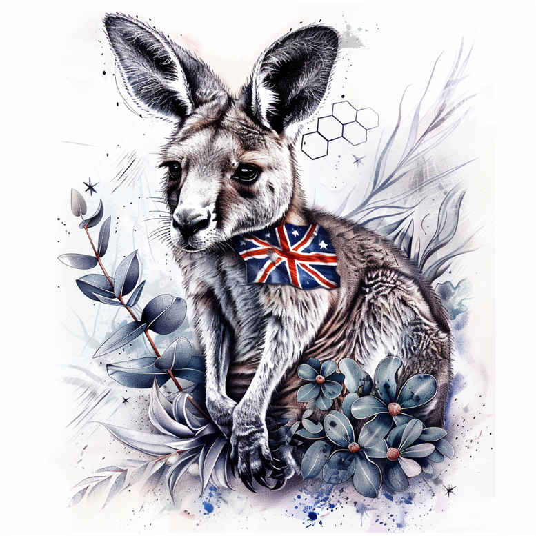 An AI-generated tattoo project concept presented as a watercolor study, this design centers a rabbit figure with a Union Jack chest patch, surrounded by blue flowers. The technique blends fine line outlines with soft color washes to create a painterly tattoo design that reads as intimate skin art. The rabbit embodies curiosity and luck, while the flag motif hints at heritage or travel, and the floral elements introduce rhythm and serenity. The composition juxtaposes crisp geometric symbolism with organic petals, enabling placements from forearm to shoulder or calf with flexibility for a small tattoo or a larger body art piece. In terms of color and technique, the flag remains bold, the floral wash delivers depth with blue and grey tonal shifts, and the fur and petals receive subtle black and grey shading to preserve legibility on the skin. For meaningful tattoos, this concept can be executed as a fine line tattoo with restrained color, or expanded into a full-color tattoo design that embraces watercolor unpredictability. Optional motifs such as a lotus flower tattoo or a rose tattoo design can be woven into the scene to reflect personal narratives. The design nods to Japanese style tattoo influences through controlled line work and soft shading, while remaining a versatile, modern tattoo concept that can be adapted into a black and grey rendition or a vibrant color piece. It also lends itself to variations in size, scale, and placement, from a discreet small tattoo to a dramatic sleeve, with attention to ink density, line integrity, and wash layering for a realistic tattoo effect. Finally, note that this is an AI-generated tattoo project concept, created to demonstrate how animal portraits, cultural symbols, and floral motifs can merge into a custom tattoo design that resonates as meaningful tattoos and artwork, a true blend of ink, tradition, and contemporary aesthetics.