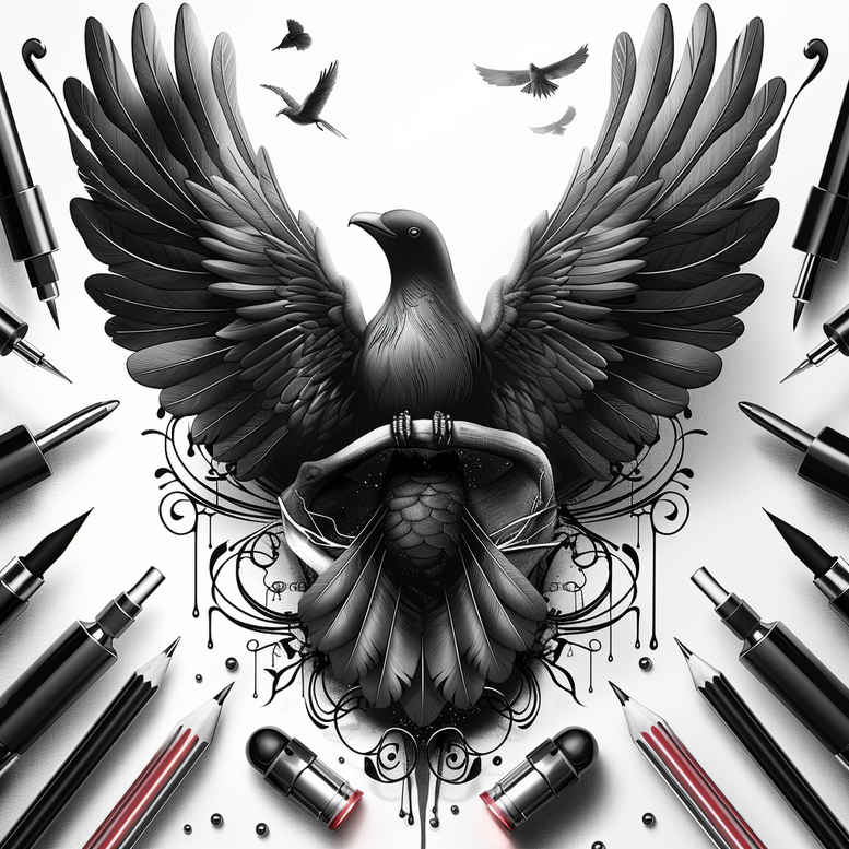 This AI-generated tattoo project features a bold black-and-grey raven rendered in precise fine-line shading, centered within an ornate circular ring and flowing arabesque patterns. The bird’s silhouette is built with layered gradients from near-black to midtones, delivering depth and a lifelike texture that stays readable on skin. Surrounding the raven, the ring and decorative motifs blend geometric discipline with organic flourish, creating a cohesive pattern that reads clearly from a distance yet rewards close inspection. Pencil-like accents along the border nod to the tattoo workflow, offering a tactile sense of drawing and ink. Designed as a complete tattoo design concept, it adapts well to forearm, upper arm, or back placements, and the strong blacks plus negative space make it a strong candidate for cover-up work by masking older tattoos with bold contrast. Symbolically, the raven suggests intelligence, transformation, and resilience, while the enclosing ring and pattern evoke cycles, protection, and continuity, giving the piece meaningful tattoo storytelling. The composition fuses black and grey realism with a Japanese-style ornamental sensibility and classic motifs such as raven, circle, and filigree, appealing to lovers of fine line tattoo, realistic tattoo, and geometric body art. For artists, the design offers customization: adjustable line weight, varying pattern density, and shading gradients to suit small tattoos or larger panels, while preserving core meanings of fate and perseverance. As an AI-generated tattoo project, it demonstrates how digital ideation translates into ink-ready design, delivering a versatile blueprint for a striking tattoo design. Its depth makes it especially suitable for cover-up applications, where bold silhouette and contrast can transform old work into fresh meaning.