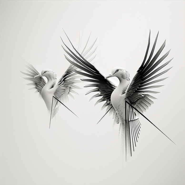 An AI-generated tattoo project concept featuring two hummingbirds in flight rendered in black and grey with fine line precision. The composition places a larger bird on the right with fully extended wings and a slender, pointed beak, while a smaller companion lingers to the left, creating a diagonal arc that suggests swift movement and balance. The piece relies on delicate line work, variable line weight, and soft gradient shading to build depth without saturating the skin, allowing the forms to read clearly at small sizes yet scale gracefully for larger placements. The grayscale treatment emphasizes subtle tonal transitions, negative space, and feather texture, hallmarks of modern fine line tattoo and black and grey realism. While maintaining an airy, minimalist feel, the design traces the anatomy of the wings, tail, and neck with precision, inviting the tattoo artist to emphasize flow and rhythm over heavy shade blocks. The two hummingbirds symbolize vitality, freedom, and resilience, and their pairing can express companionship, a partnership, or personal growth; the motif is adaptable to various narratives, from dedicated memorials to celebratory life milestones. As an AI-generated tattoo project concept, it offers a versatile template: resize to fit a forearm sleeve, simplify for a discreet wrist piece, or enrich with floral accents, lotus elements, or a delicate infinity loop to deepen meaning. The work aligns with tattoo design trends that favor fine line techniques, black and grey palettes, and small tattoos, while still offering potential for a more expansive, Japanese style-inspired interpretation through selective shading and composition. From a practical and artistic standpoint, the design supports clean line work, careful feather detailing, and controlled shading that ensures legibility over time, making it a robust option for clients seeking meaningful tattoos that remain timeless as a body of ink. SEO-wise, the language emphasizes tattoo, tattoo design, meaningful tattoos, fine line tattoo, lotus flower tattoo, infinity tattoo, tribal tattoo, rose tattoo design, small tattoos, flower tattoos, custom tattoo design, Japanese style tattoo, black and grey, realistic tattoo, body art, ink.