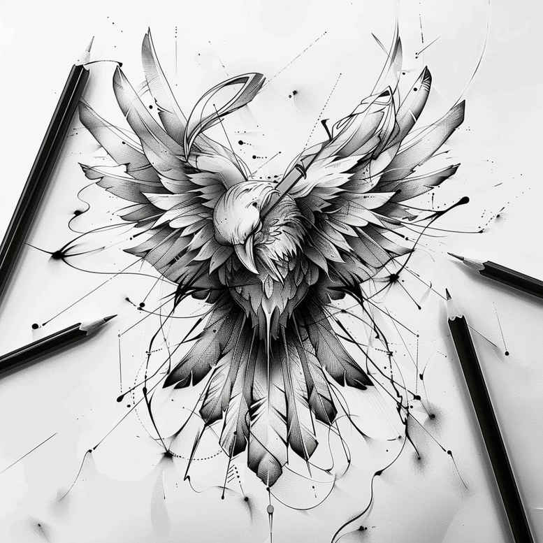 This AI-generated tattoo project presents a phoenix-inspired bird rendered in a meticulous fine-line technique. The central silhouette is defined by crisp feathered plumage, with delicate line work building texture across the wings and tail. The composition relies on high contrast between negative space and shaded areas, creating a sense of lift and motion as the bird unfolds its wings. The piece emphasizes natural feather patterns while maintaining a bold, readable form suitable for various placements on the body. The design blends elements of Japanese-inspired precision with a modern fine-line aesthetic, suitable for small tattoos or as a larger back, chest, or sleeve piece. The symbolism echoes rebirth, resilience, and freedom; the phoenix motif is adaptable for personal meaning, making it a strong statement for meaningful tattoos. The rendering aims for a realistic tattoo impression through subtle grading, cross-hatching, and soft transitions between light and dark tones. The work aligns with tattoo design fundamentals: line quality, weight variation and composition that respects skin curvature. As an AI-generated tattoo project, it demonstrates how algorithmic concepting can yield refined line work and balanced black and grey shading while remaining faithful to classic tattoo vocabulary. Keywords include tattoo, tattoo design, meaningful tattoos, fine line tattoo, lotus flower tattoo, infinity tattoo, tribal tattoo, rose tattoo design, small tattoos, flower tattoos, custom tattoo design, Japanese style tattoo, black and grey, realistic tattoo, body art, ink.