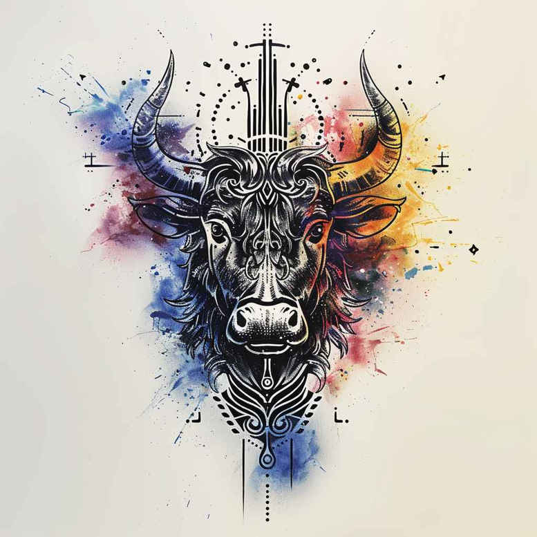 AI-generated tattoo project concept presented as a sophisticated study in contrast and linework. The central motif is a horned bull head rendered in precise black-and-grey fine line technique, its face adorned with zebra-like stripes that echo through an architectural vertical axis of geometric elements. Blue, purple, and yellow watercolor washes bleed around the edges, creating a vivid halo that balances the restrained ink with dynamic color. This pattern-rich design marries realism-inspired anatomy with abstract splashes, offering a versatile canvas that can be scaled as a small tattoo or extended into a larger piece. The bull head symbolizes strength and resilience, while the zebra striping introduces a kinetic pattern that reinforces movement and depth without overpowering the form. The composition explores the tension between monochrome precision and free-form color, making it suitable for enthusiasts of black and grey linework who crave a splash of color or for those seeking a bold, highly visible statement. From a technical standpoint, the piece foregrounds clean linework, deliberate shading, and careful ink distribution to preserve legibility on skin while allowing the watercolor to breathe. It also nods to Japanese style tattoo discipline through precise angles and a balanced composition, while the juxtaposition with global patterns—like zebra stripes—invites cross-cultural interpretation within a single image. In terms of placement, the design adapts well to the forearm, upper arm, or calf, and can be simplified for a compact tattoo or expanded into a sleeve narrative. As an AI-generated tattoo project, it illustrates how algorithmic concepts can spark meaningful tattoos that blend symbolism with pattern-driven artistry, offering a fresh approach to classic motifs such as the bull, the pattern, and color storytelling that resonates with modern body art. This description intentionally emphasizes pattern and color to guide viewers toward the tattoo design’s potential, weaving keywords such as tattoo design, meaningful tattoos, fine line tattoo, lotus flower tattoo, infinity tattoo, tribal tattoo, rose tattoo design, small tattoos, flower tattoos, custom tattoo design, Japanese style tattoo, black and grey, realistic tattoo, body art, ink.