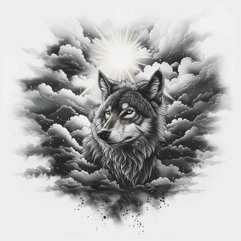 This AI-generated tattoo project presents a moody, highly detailed study of a wolf emerging from turbulent clouds beneath a radiant sun. Rendered in black and grey, the design blends realism with atmospheric shading to create a striking portrait that is especially well suited for a cover-up. The central motif is the wolf, portrayed with textured fur, keen expression, and a gaze that conveys strength and independence. Surrounding it, wisps of cloud frame the head and suggest motion, while a round sun peeks through, providing a luminous focal point and a symbolic counterpoint to the wolf’s introspective mood. The composition balances bold silhouette with subtle gradation, allowing rich ink contrasts to anchor the piece while soft shading builds depth. The concept can be adapted as a small tattoo or expanded into a larger work, with options ranging from a realistic portrayal to a more stylized, fine line interpretation depending on client preference. This animal portrait speaks to meaningful tattoos and the timeless appeal of nature-inspired body art; it also falls within classic tattoo design themes such as black and grey realism, flower tattoos, or even lotus or infinity motifs if the client wishes to weave additional symbolism. As an AI-generated tattoo project, it illustrates how algorithmic concepts can inspire custom tattoo design ideas that artists can tailor to individual clients’ bodies and tastes. For cover-up purposes, the combination of strong negative space and dense shading provides a robust canvas to conceal prior marks while preserving a powerful focal image. In sum, the wolf and cloud imagery embodies resilience and guardianship, rendered in a sophisticated black and grey palette that suits both traditional and modern tattoo aesthetics, and it remains a versatile seed for broader themes such as Japanese style tattoo, tribal tattoo, or rose tattoo design if the client wishes to extend the narrative with ink. Technique notes: stippling along the fur lines enhances texture, while smooth gradients in the cloud mass deliver depth without sacrificing clarity at smaller scales. The project seeks to convey mood and narrative through tonal contrasts, letting the viewer read the wolf’s story across skin as ink ages over time.