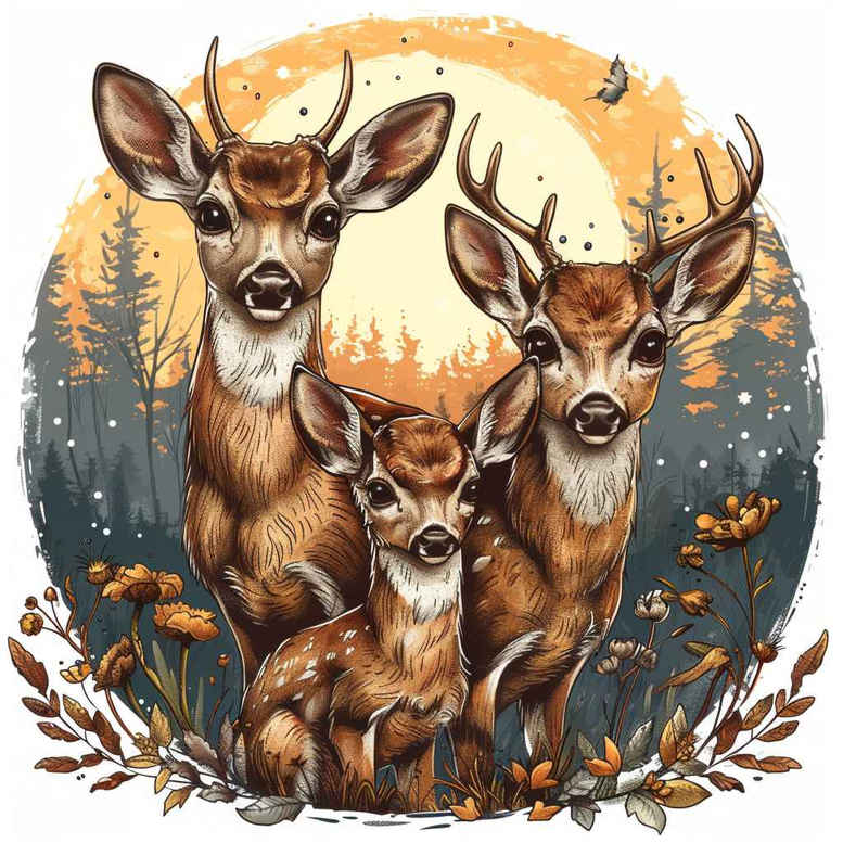 This tattoo design concept depicts a family of deer poised within a warm autumn forest, rendered in a painterly watercolor inspired style that blends realism with soft atmospheric washes. The foreground shows an adult buck with a doe beside a curious fawn, their forms defined by clean lines and subtle shading that capture movement and tenderness. Behind them a slender forest recedes toward a pale circular moon, while scattered leaves in amber, ochre, and umber drift through the scene. The composition favors open negative space and a seamless transition between light and shadow, enabling an artist to translate it into a fine line tattoo or a more fully realized black and grey realistic tattoo depending on client preference. The symbolism centers on family bonds, gentleness, and the quiet cycles of nature, with the moon adding a sense of timelessness and renewal. Although the motif originates as a naturalistic landscape, the concept is adaptable to broader tattoo storytelling such as a Japanese style tattoo interpretation with a graphic silhouette or a rose tattoo design motif integrated as a companion piece. For color options the tag suggests black and grey, yet the piece can be rendered in full color or kept in grayscale to emphasize texture and mood. This AI generated tattoo project concept invites tattoo artists to explore depth with fine line details in fur texture, delicate foliage, and the ethereal glow around the moon while maintaining a timeless body art aesthetic. The design embraces meaningful tattoos and can suit small or large formats, with potential placements on the arm, back, or chest, reflecting trends in ink and flower tattoos while showcasing a refined nature inspired motif. Key elements to tag include deer, moon, forest, leaves, and landscape, and the approach favors invariants of clean line work, soft shading, and a painterly touch that distinguishes a bespoke custom tattoo design.