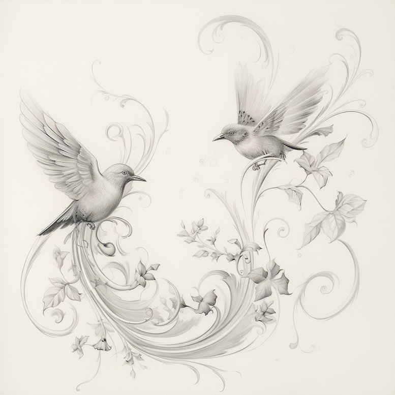 This AI-generated tattoo project concept features two hummingbirds poised among a lattice of delicate floral swirls rendered in black and grey. Executed in a fine line style, the design relies on ultrafine outlines, restrained shading, and negative space to keep the composition airy and elegant. The birds hover near a central bouquet of blossoms, while curling vines weave between wings and petals, creating a sense of motion and harmony. The overall look favors subtle texture over heavy fill, making it suitable for small tattoos or as a discreet base that can be enhanced with additional ink. Symbolically, hummingbirds evoke joy, resilience, and adaptability, paired here with florals to suggest growth, renewal, and the cyclical nature of life. The grayscale palette adds a timeless quality, reinforcing the tattoo’s versatility across placements such as the wrist, inner forearm, or shoulder. From a technical standpoint, this mockup demonstrates how fine line tattooing can deliver intricate detail and a sense of depth through layering and light shading, while maintaining legibility as the piece scales. For collectors, the pattern-like line work offers potential for future expansion or incorporation into larger botanical schemes, and the clean composition translates well into Japanese-inspired or contemporary botanical themes. This is an AI-generated tattoo project concept; it acts as a customizable design that can be adapted to a real tattoo brief, preserving the balance between elegance and readability in black and grey ink. It remains suitable for meaningful tattoos and can be tweaked for cover-up if integrated with existing dark ink, though the current concept leans toward a standalone fine line aesthetic.