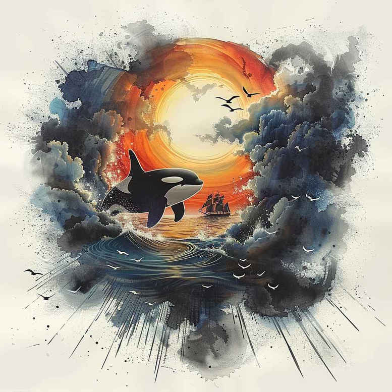 Generated as an AI-generated tattoo project, this watercolor concept merges natural energy with a sleek animal silhouette in a composition designed for longevity on skin. The central orange sun sits on the horizon, its glow spilling into a curling blue wave that frames a bold black dolphin silhouette leaping across the spray. Soft washes and feathered edges mimic traditional watercolor painting, while precise silhouette work preserves legibility as the ink settles. Small birds in flight and wispy clouds add atmosphere and depth, providing scale without clutter. The chosen palette blends warm sunlit tones with cool ocean hues, offering vibrant contrast while maintaining harmony across skin tones. Technique notes favor layered translucence, gradual color blending, and controlled edges to reproduce the look of wet-on-wet washes while keeping the dolphin crisp. Symbolically, the sun represents vitality and renewal, the dolphin embodies playfulness and intelligence, and the wave signifies a journey and resilience—an ideal narrative for meaningful tattoos or a custom tattoo design. The concept is adaptable: it can be enlarged for a back piece or simplified for a forearm, and artists can weave in motifs such as lotus, infinity, or Japanese-inspired linework to tailor it to a client’s story. This AI-generated tattoo project can be refined into a commission-ready piece by a skilled tattooist who wants a bold color splash with negative space around the silhouette, ensuring strong visibility over time. The description nods to broader tattoo discourse, incorporating terms like tattoo design, meaningful tattoos, fine line tattoo, lotus flower tattoo, infinity tattoo, tribal tattoo, rose tattoo design, small tattoos, flower tattoos, custom tattoo design, Japanese style tattoo, black and grey, realistic tattoo, body art, and ink, all while highlighting a fresh approach to color and composition.