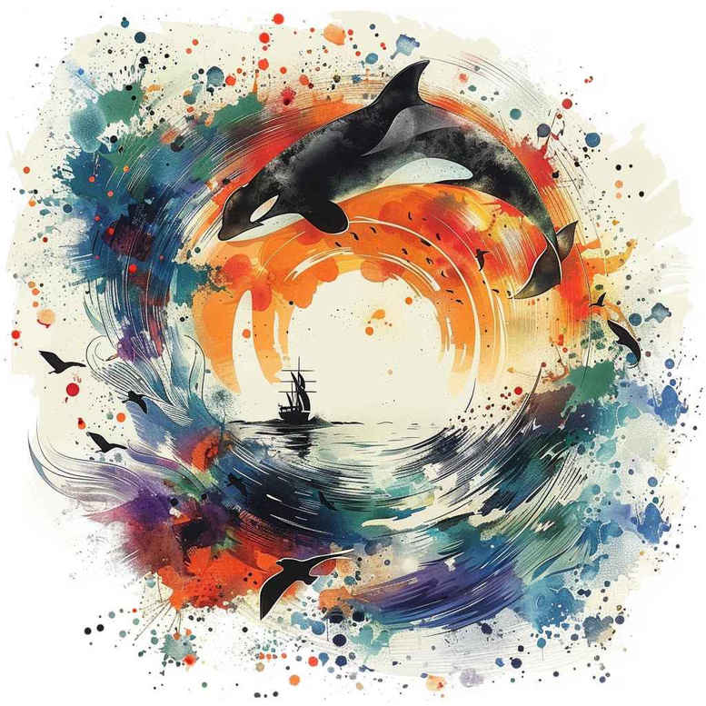 An AI-generated tattoo project concept rendered in a watercolor idiom, presenting a circular core that anchors a dynamic field of color. At the heart lies an amber-orange arc suggesting a rising sun, surrounded by translucent washes of cobalt, teal, emerald, and violets that radiate outward in loose splashes. Two black silhouettes of birds in flight skim the edge of the circle, introducing motion and a narrative of freedom, while the surrounding pigment creates an organic halo that blurs the boundary between pigment and skin. This concept balances bold color blocks with fine line detail, making it adaptable to both small and large canvases: a delicate forearm piece can rely on tighter linework and softer washes, whereas a shoulder or back piece benefits from broader color fields and smoother gradients. Technically, the design can be realized with crisp outlines for the birds and hairline feather shading, plus layered transparent inks to emulate watercolor bleed and luminosity on skin. The circular core communicates unity and cycles, while the birds symbolize travel, resilience, and aspiration; the color palette—blue, teal, green, orange, amber, and hints of red—offers mood versatility and can be adjusted for different skin tones and personal symbolism. The motif is modular: circle and splash elements can be extended with lotus tattoo motifs for spiritual growth, infinity lines to express continuity, or floral accents to soften edges, while echoing Japanese style tattoo flow through sweeping curves and balanced composition. In the broader context of tattoo design, watercolor concepts remain popular for their organic edges, soft transitions, and emotional resonance, compatible with both black-and-grey and full-color ink strategies. This concept thus serves as a sophisticated template for a custom tattoo design that can be tuned to scale, placement, and storytelling, from subtle small tattoos to expansive body art, all while maintaining the painterly, luminous aesthetic distinctive of watercolor tattooing. Note: This description showcases an AI-generated tattoo project concept, illustrating how a watercolor circle with birds can translate into wearable art across diverse canvases.