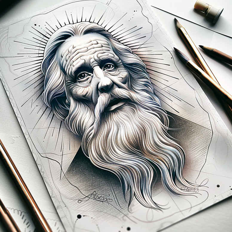 This tattoo gallery entry presents a solemn homage to the figure of the One God YAHWEH, rendered as a symbolic portrait rather than a literal deity. The design explores mood, line, and shading in a grayscale palette to evoke reverence without doctrinal iconography. The portrait centers on an elderly man with a long beard, deep-set eyes, and flowing hair that frames the face like tendrils of light. The aesthetic is a fusion of traditional religious iconography and contemporary tattoo design: fine lines define the contours of the nose, lips, and brow, while subtle gradient shading builds volume and softness across cheeks and forehead. The composition relies on a vertical axis, with the beard cascading downward and the hair sweeping to the sides, creating a sense of movement that mirrors prayerful stillness. The piece uses controlled contrast—rich black inks in the beard and hair anchor the image, mid-tones on the cheeks give form, and pale highlights suggest a glow rather than a literal halo. The overall effect is a refined black and grey tattoo that reads as a quiet, introspective study in wisdom and sovereignty, making it suitable for meaningful tattoos and for collectors who value a discerning, custom tattoo design. The concept is AI-generated, reflecting modern explorations in machine-assisted art, yet it remains a human-ready tattoo concept suitable for a skilled practitioner to adapt into a personal body art piece. No image can depict the true image of God — all designs are only symbolic, artistic interpretations of His essence, not a real representation. In marketing terms, this tattoo design speaks to fans of fine-line technique, realistic portraits, and religious tattoo expressions, offering a template that can be refined for a cover-for-sleeve or single-session piece, depending on client preference; it integrates the spiritual dimension with the aesthetics of black and grey ink, and serves as a versatile asset for tattoo studios seeking to showcase thoughtful, meaningful tattoos and custom tattoo design concepts.