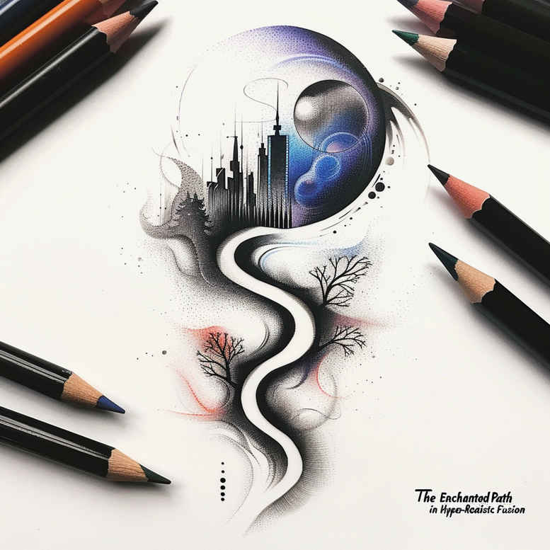 This AI-generated tattoo project presents a bold, narrative design in which a sinuous serpent forms the central axis, its body curving into an S that threads between a stylized city skyline on the left and a bare tree on the right. Rendered in black and grey with careful shading, the piece reads as a refined fine line tattoo, balancing solid silhouettes with delicate linework. A crescent moon hovers above, adding a celestial counterpoint and a quiet glow that enhances negative space around the urban and natural silhouettes. The leftward urban landscape anchors the image in modern life, while the tree branches on the right evoke growth, endurance, and memory—two countervailing forces that the serpent binds into a single, cohesive story. Technique-wise, the skyline is crisp with precise edges, the tree branches are intricate but restrained, and the serpent’s gradient shading creates a sense of movement without overpowering the composition. The design is versatile in placement, suitable for forearm, calf, or back work, and its heavy black areas make it an excellent candidate for a cover-up tattoo where existing dark ink needs to be masked or reworked. Symbolically, the serpent can symbolize transformation or healing, while the city skyline stands for ambition and journeys, the crescent moon for cycles and change, and the tree for life and resilience. This concept also serves as a strong example of a custom tattoo design that marries urban imagery with nature through a cohesive black-and-grey palette, appealing to fans of meaningful tattoos, infinity motifs, and Japanese or tribal-inspired influences, while staying grounded in the fine line and realistic tattoo aesthetic. Overall, the piece demonstrates how AI-generated concepts can inform compelling body art ideas and offers a practical, cover-up-friendly template for clients seeking a bold, narrative tattoo design that can be adapted to personal stories and skin tones.