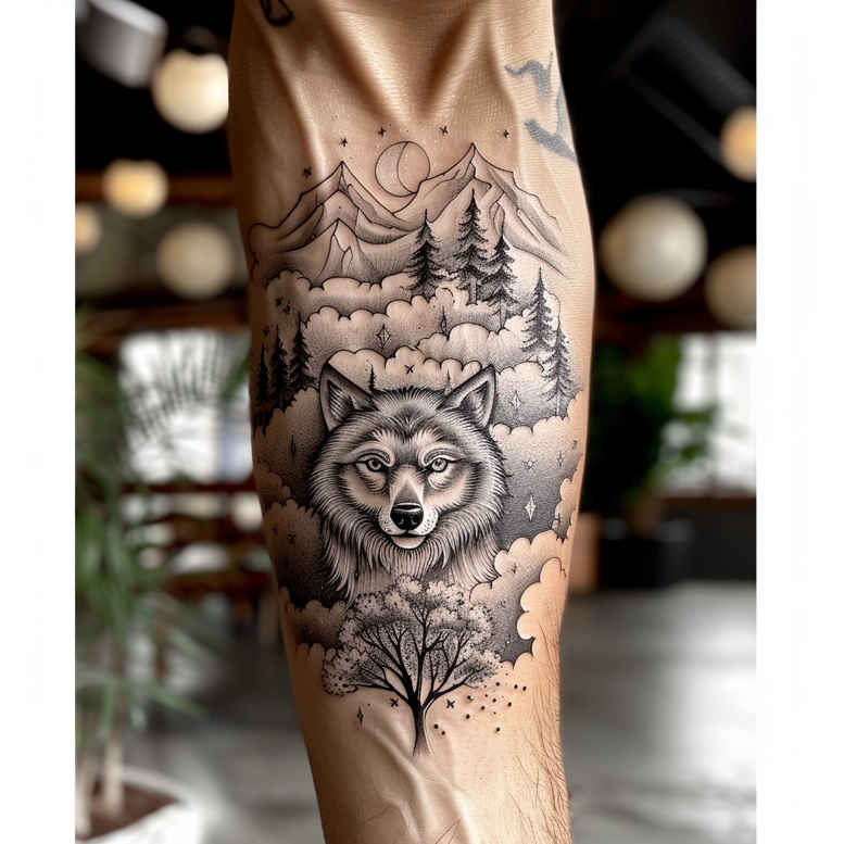 This AI-generated tattoo project presents a cohesive landscape motif rendered in black and grey, blending a lotus blossom at the center with a distant range of mountains and a row of pines. The central lotus is stylized with layered petals and crisp geometric facets that invite a meditative, mandala-like rhythm, while the mountains form a jagged horizon and the pines provide vertical counterpoints. The line work is intentionally restrained but precise, with fine lines shaping the trees and contour lines defining the mountains, and soft grayscale shading building depth in the lotus petals and the rock faces. The overall composition balances graphic clarity with naturalistic texture, so the piece reads well at small scales yet remains legible when enlarged. In terms of symbolism, the lotus represents growth and purity emerging from darker waters, the mountains symbolize steadfastness and ascent, and the evergreens convey resilience. The combination of these elements delivers a tattoo design that speaks to personal journeys, memory, and the pursuit of calm amid life’s rugged terrain. The design leans toward a Japanese style sensibility in its disciplined line economy and grayscale execution, while keeping universal appeal for those drawn to black and grey realism or fine line floral landscapes. This project is suitable for placement on the forearm or calf, and the symmetry invites a cohesive, single-panel look or can be expanded into a larger sleeve or wrap. As an AI-generated tattoo project, it demonstrates how nature motifs can be fused with geometric precision to create a meaningful body art statement, with opportunities to adjust line thickness, shading depth, and silhouette to fit individual skin tones and preferences. Keywords such as tattoo, tattoo design, meaningful tattoos, fine line tattoo, lotus flower tattoo, infinity tattoo, tribal tattoo, rose tattoo design, small tattoos, flower tattoos, custom tattoo design, Japanese style tattoo, black and grey, realistic tattoo, body art, ink are embedded to reflect contemporary search terms.