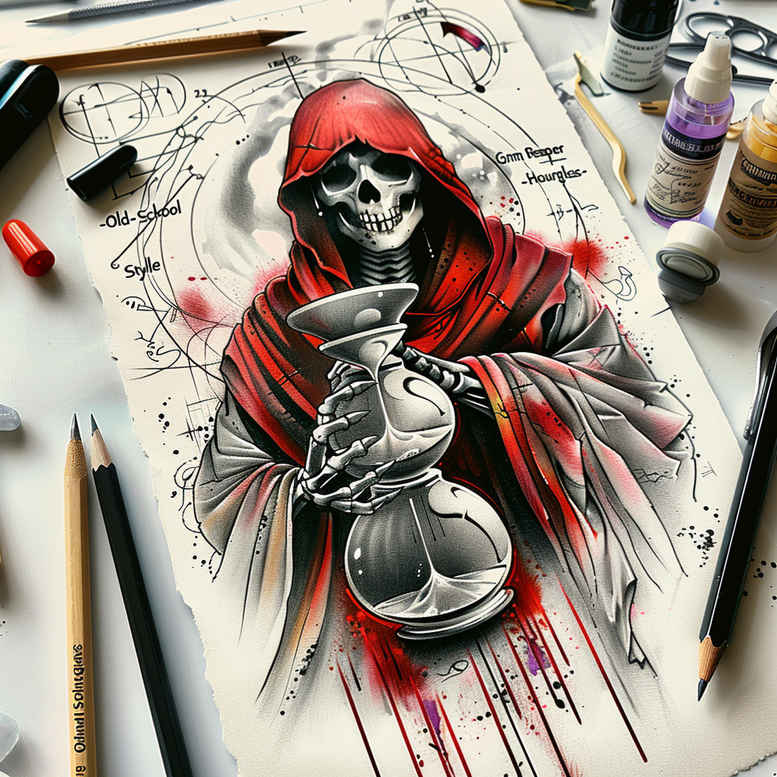 AI-generated tattoo project introduces a dark, iconoclastic figure: a skeleton in a red hood, gripping a goblet. Rendered in a dramatic black and grey palette with selective red accents, the design emphasizes bold linework, subtle shading, and dynamic contrast to achieve a timeless, tattoo-ready image. The composition centers the skeletal figure in a vertical, slightly twisting stance, allowing negative space around the goblet and cloak to breathe on skin. Fine line precision combined with soft gray washes creates depth, while the crimson highlights draw attention to the hood, goblet, and splattered backdrop, suggesting motion and a sense of ritual. The goblet itself is rendered with reflective highlights and delicate stem details to evoke a sense of reverence and danger, echoing themes of mortality and temptation. This concept is suitable as a larger sleeve or back piece, but its strong silhouette and clear focal points also translate well to small tattoos for placement options. The background features scribbled markings and splatters that read like stage lighting and ink study, reinforcing the sense of an illustration ready for transfer. Symbolically, the skeleton stands as a timeless reminder of impermanence, while the red hood hints at passion, risk, and the lure of the unknown; together with the goblet, the piece can be read as a meditation on choice and consequence. For tattoo enthusiasts, this design offers a bold black and grey framework with enough contrast to age gracefully, yet the red accents ensure it remains striking on skin. It’s a strong, meaningful tattoo design that fits within Japanese and gothic influences, with potential adaptations for lotus flower tattoo or infinity tattoo motifs if desired. Practically, the artwork is provided as a ready-to-trace linework concept with clear delineation of the main forms, enabling a skilled artist to translate it into a custom tattoo design. Because this is an AI-generated tattoo project, clients should collaborate with their tattoo artist to tailor scale, placement, and line weight; the result can be a striking statement of body art suitable for cover-up scenarios on dark skin tones or when concealing existing work. The piece embraces both realism in texture and a stylized aesthetic, marrying linear precision to expressive splashes, so it remains versatile for black and grey or selective color tattoos, and serves as a compelling example of a modern tattoo design that respects tradition while embracing contemporary graphic patterns.