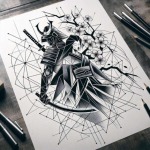 warriors tattoo design ideas Realism photographic quality sword bearer for behind ear